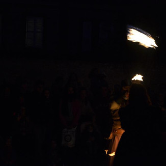 No final da tarde, ao voltarmos, encontramos no caminho um grupo de pessoas fazendo malabarismos com fogo, a comuna estava cheia de pessoas nas ruas por causa das festas de Halloween.
